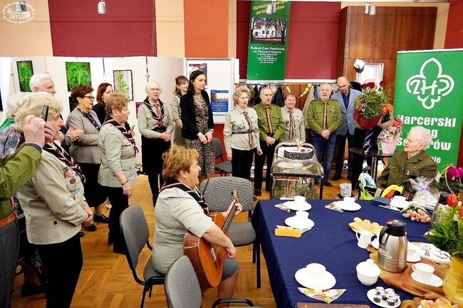 Jubilatka to emerytowana nauczycielka, współzałożycielka Stowarzyszenia Pomocy Dzieciom „Kraina uśmiechu”, przewodnicząca Harcerskiego Kręgu Seniora przy Muzeum Ziemi Szubińskiej, członkini Rady Muzeum. Za swe zasługi otrzymała m.in. Order Uśmiechu, Honorowy Medal Sędziwoja z Szubina, Medal im. Ks. Jana Kleina. Na przygotowanej przez Harcerski Krąg Seniorów i muzeum uroczystości nie zabrakło życzeń od harcerzy, które w imieniu harcerzy-seniorów Chorągwi Kujawsko-Pomorskiej ZHP złożyła hm Halina Krystowczyk, w imieniu Hufca ZHP Pałuki hm Olga Skotnicka, w imieniu Kręgu Seniorów ZHP przy Muzeum hm Teresa Foigt. Życzenia Benignie Olszewskiej złożył również burmistrz Szubina Mariusz Piotrkowski wraz z zastępcą Anną Kijowską, a z ramienia muzeum i Rady Muzeum Kamila Czechowska i Patrycja Banasiak, dyrektor biblioteki Mirosław Rzeszowski oraz Józef Kłosowski, który był w drużynie harcerskiej w Kowalewie, którą prowadziła druhna Benia. Jubilatka wspomniała swoje harcerskie początki, pierwsze obozy i zbiórki. Podczas spotkania nie zabrakło harcerskich śpiewów.