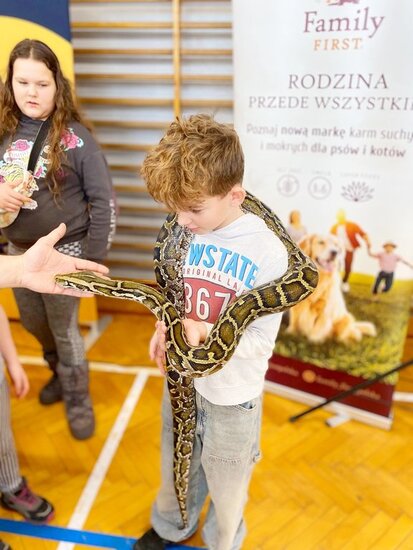 Ekipa Family Pets & ZOO wraz z behawiorystą i marką Barry King zabrała nas w niezwykły świat zwierząt. Czy dacie wiarę, że ten największy wąż ma na imię… PYSIA?! I co najlepsze – jest bardzo przyjacielska! Emocji nie brakowało także przy spotkaniu z pająkami (odważnych nie brakowało!).
