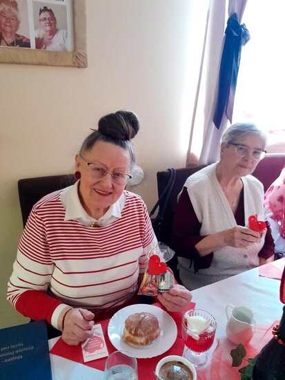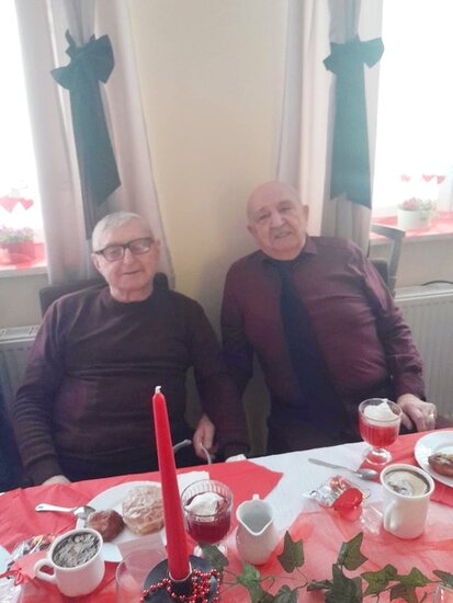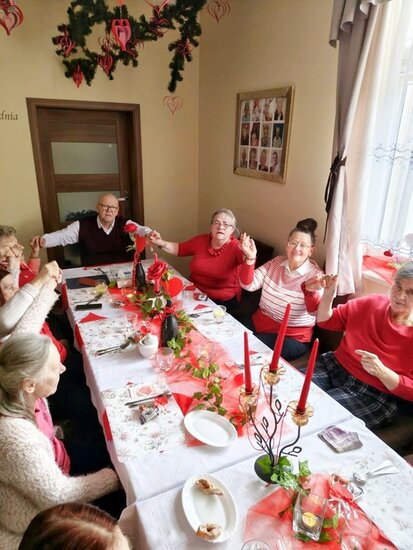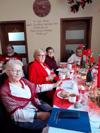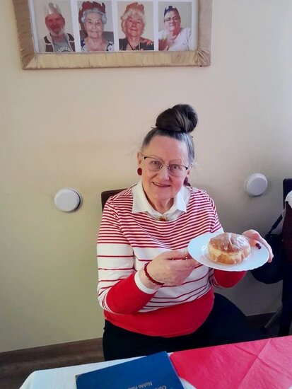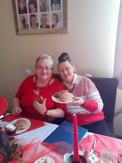12 lutego pierwsza grupa seniorów# z Dziennego Domu Pobytu Senior+ w Nakle świętowała wspólnie Tłusty Czwartek i Walentynki.