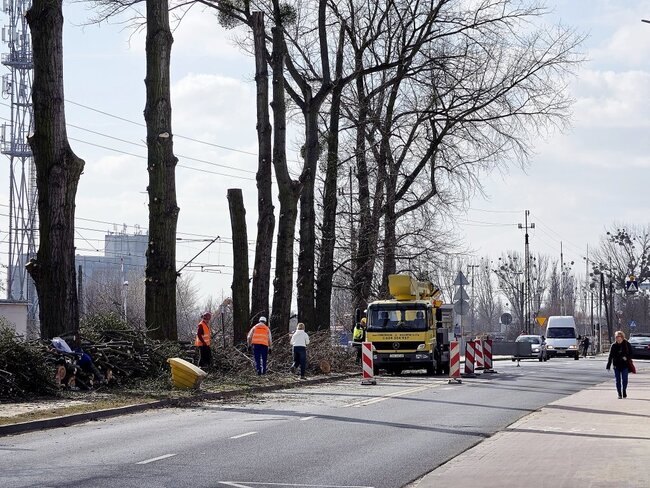 Od rana przy ulicy Mickiewicza trwają prace związane z wiosenną pielęgnacją zieleni. Przycinane są topole, rosnące wzdłuż torów kolejowych. Na miejscu pracują ekipy wyposażone w podnośniki oraz specjalistyczny sprzęt do cięcia gałęzi. Prace polegają przede wszystkim na usuwaniu suchych i uszkodzonych konarów, które mogłyby stanowić zagrożenie dla pieszych i kierowców.