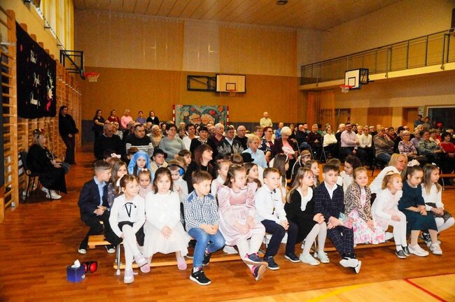 Część artystyczną rozpoczęła klasa pierwsza, prezentując wiersze i piosenkę, ukazujące obraz nowoczesnej Babci i Dziadka. Występ wzbudził wiele uśmiechów i radości wśród publiczności.
