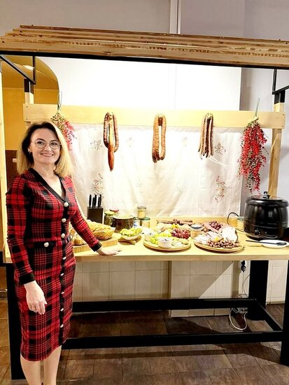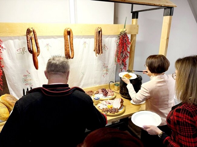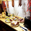 W klimacie ludowym, pełnym tradycyjnej kuchni, przygotowaliśmy poczęstunek dla wszystkich naszych gości. Na sali czekał już wiejski stół z bigosem, sałatką jarzynową, wędzonymi kiełbasami oraz szynką. Nie zabrakło smalcu, kiszonego ogórka i domowego chleba oraz oscypka z żurawiną. Na barze stało kilka rodzajów ciast, więc każdy mógł znaleść coś dla siebie. Tak jak barwne były stroje członków zespołu, tak wielobarwna była atmosfera tego wydarzenia. Wszystkim, którzy włożyli serce w ten wieczór, zarówno zespołowi jak i przybyłym gościom DZIĘKUJEMY.