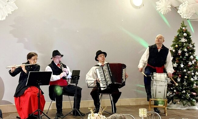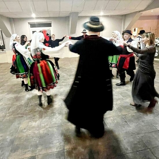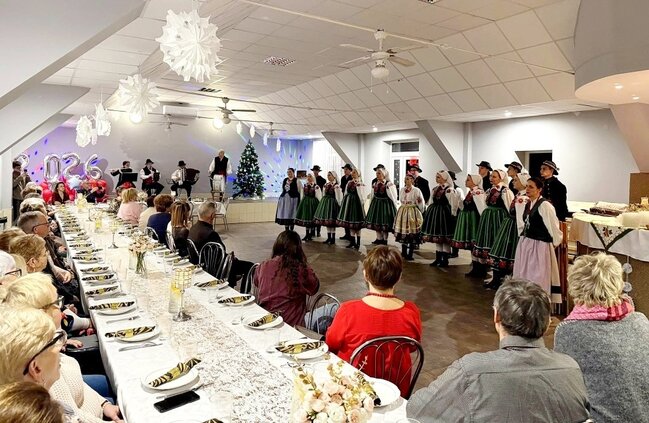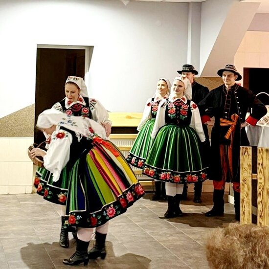 Planując spotkania integracyjne na# cały rok kalendarzowy jest taki czas, w którym pamiętamy o starszym pokoleniu naszych mieszkańców. Łącząc Dzień Seniora oraz Dzień Babci i Dziadka zorganizowaliśmy koncert zapraszając do udziału zaprzyjaźniony zespół ludowy Krajna. Dzięki temu obejrzeliśmy występ świąteczno - noworoczny, oparty na śpiewaniu i tańcu ludowym.