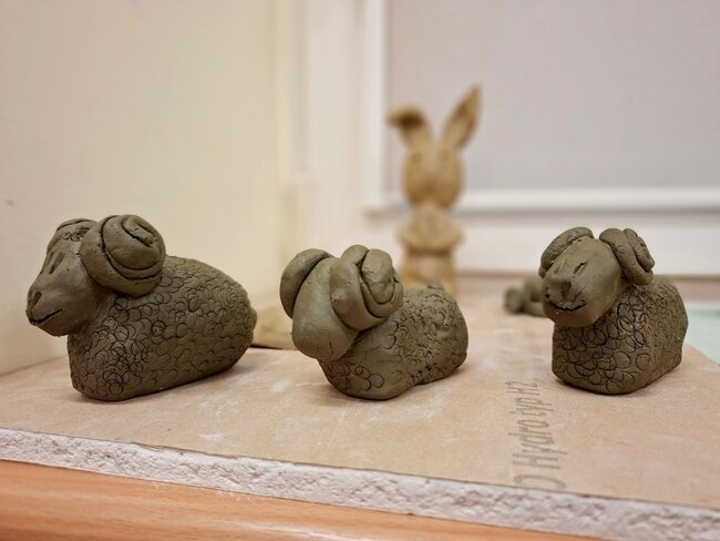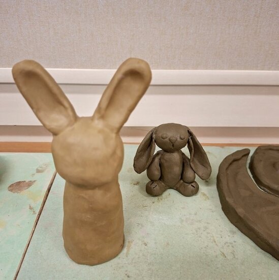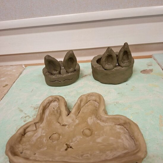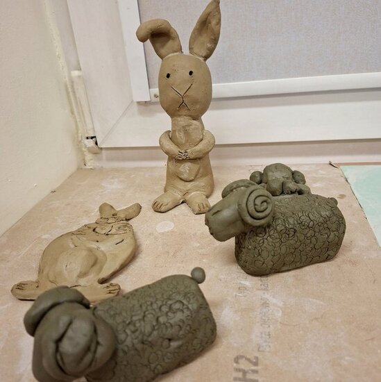 Podczas wtorkowych zajęć powstały urocze, gliniane prace – zajączki , owieczki , miseczki. Teraz przed nami kolejny etap czyli wypał, a później… szkliwienie i nadanie im wyjątkowych kolorów .