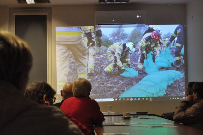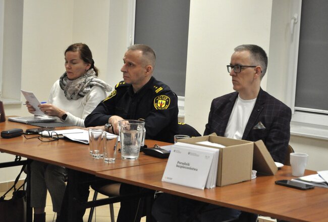 Sporo czasu poświęcono również tematom związanym z ochroną ludności. Burmistrz wspomniał o realizowanych i planowanych inwestycjach, które mają pełnić m.in. funkcję doraźnych miejsc schronienia. Gminny Komendant Ochotniczych Straży Pożarnych Krystian Płatek podsumował natomiast zeszłoroczne działania oraz inwestycje realizowane w jednostkach OSP działających na terenie gminy. Podsumowaniu towarzyszyła prezentacja multimedialna. Z kolei komendant Straży Miejskiej Roman Frąckowiak omówił działalność tej jednostki.