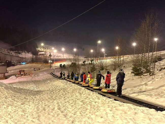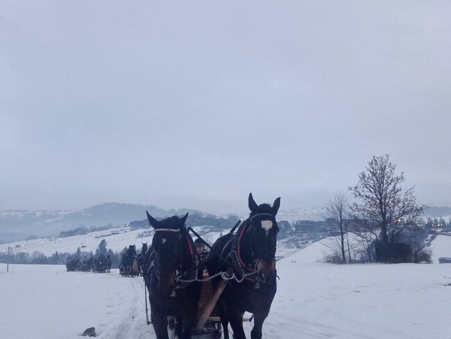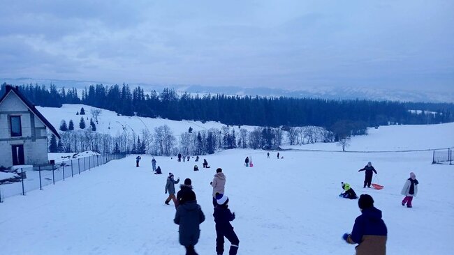 Nie zabrakło zimowych aktywności – jazdy na łyżwach i oponkach na torze lodowym. W czwartkowy wieczór uczestnicy świetnie bawili się na kuligu, który zakończył się wspólnym ogniskiem.