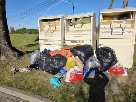 Chciałbym poruszyć temat kontenerów na odzież, które stoją w Mroczy przy skrzyżowaniu ulic Słonecznej i Czereśniowej. Odzież z kontenerów od dłuższego czasu nie jest odbierana. Ludzie zwożą tutaj wszystko co się tylko da, oprócz odzieży są buty, walizki, naczynia i inne rzeczy. Zrobiono sobie tutaj wysypisko niepotrzebnych rzeczy. Mieszkańcy interweniowali w tej sprawie w urzędzie miasta. Teren wokół kontenerów co prawda został uprzątnięty, ale jest to tylko chwilowa poprawa, ponieważ za kilka dni jest ponownie góra śmieci. Domagamy się usunięcia tych kontenerów.