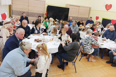 Planując spotkania integracyjne na# cały rok kalendarzowy jest taki czas, w którym pamiętamy o starszym pokoleniu naszych mieszkańców. Łącząc Dzień Seniora oraz Dzień Babci i Dziadka zorganizowaliśmy koncert zapraszając do udziału zaprzyjaźniony zespół ludowy Krajna. Dzięki temu obejrzeliśmy występ świąteczno - noworoczny, oparty na śpiewaniu i tańcu ludowym.