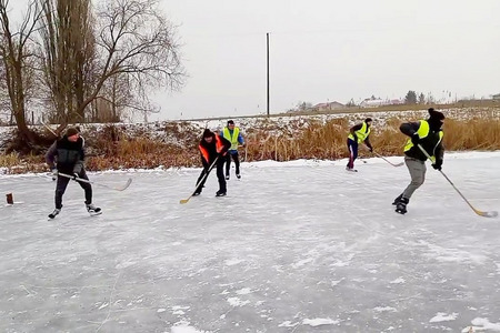 W dniu dzisiejszym# 25.01.26r. na stawie w Żarczynie rozegrano mecz hokeja. Mróz szczypał w policzki ale nikt nie myślał o zejściu z lodu.