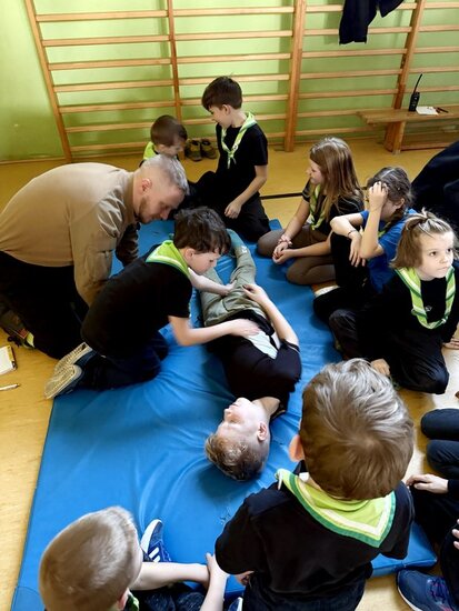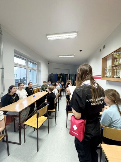 Po powrocie z gry wszyscy uczestnicy wzięli udział w szkoleniu z resuscytacji krążeniowo-oddechowej, które poprowadził Jacek Molęda ze Stowarzyszeniem Ratowników Medycznych Powiatu Nakielskiego. Zajęcia miały na celu rozwijanie praktycznych umiejętności reagowania w sytuacjach zagrożenia życia.