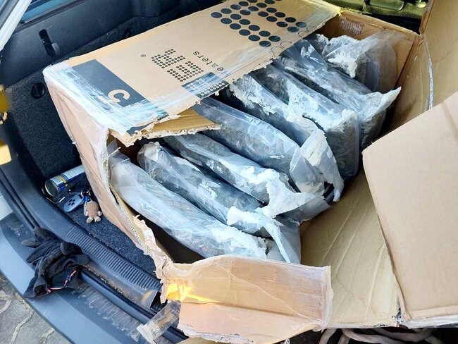 Chwilę później, podczas przeszukania auta, w jego bagażniku funkcjonariusze ujawnili sporych rozmiarów karton, a w nim 10 dużych worków zamkniętych próżniowo z zawartością suszu roślinnego, a także kilkaset złotych. Wstępne badanie narkotesterem potwierdziło, że to marihuana.