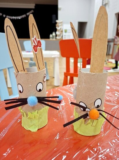Pani Eugenia przeczytała ciekawą książeczkę, a następnie wspólnie wykonaliśmy pracę plastyczną – urocze zajączki z rolek. Szukaliśmy drogi do koszyczka z jajkami, rozwijając logiczne myślenie i spostrzegawczość, a także próbowaliśmy swoich sił w liczeniu.