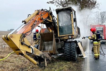 Pożar koparki. Droga była zablokowana