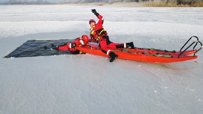 Mróz, a przez to w różnym stopniu# skute lodem akweny, to idealny czas na doskonalenie umiejętności z zakresu ratownictwa wodnego i lodowego.