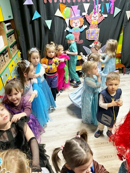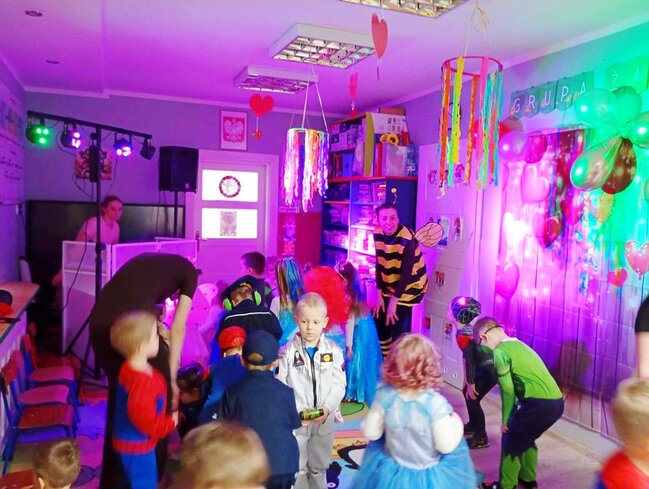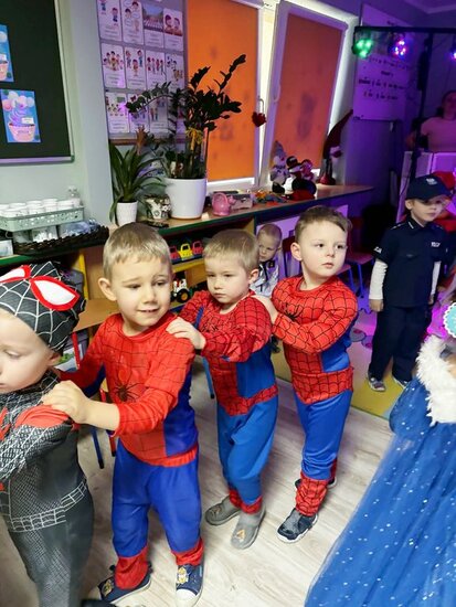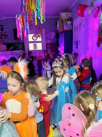 Na parkiecie królowały cztery wyjątkowe grupy – wesołe Misie, skoczne Żabki , radosne Biedronki oraz roztańczone Motylki. Każde dziecko wyglądało bajecznie! Były księżniczki, superbohaterowie, strażacy, wróżki, zwierzątka i wiele innych niezwykłych postaci. Trudno było rozpoznać, kto kryje się pod kolorową maską!
