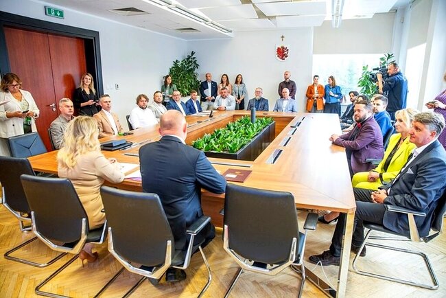 Wręczenie umów na zakup autobusów, fot. Andrzej Goiński UMWKP