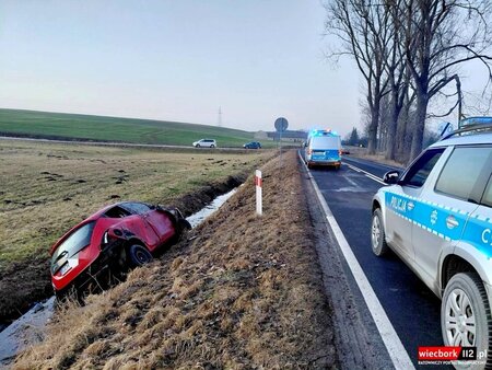 Na miejsce zadysponowano dwa zastępy z Jednostki Ratowniczo-Gaśniczej w Sępólnie Krajeńskim oraz zastęp z Ochotniczej Straży Pożarnej w Więcborku. Na miejscu okazało się, że samochód osobowy marki Lancia zjechał do przydrożnego rowu i dachował. Pojazdem podróżowała 19-letnia kobieta, która po przebadaniu pozostała na miejscu zdarzenia. Na czas działań na drodze wojewódzkiej występowały utrudnienia w ruchu.
