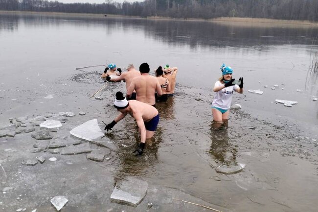 Dzisiaj, 9 lutego tradycyjnie Krajeńskie Morsy " Przerębel" weszli do wody na jeziorze Zabarowskim.