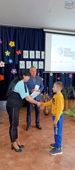 Ważnym elementem uroczystości było rozstrzygnięcie szkolnego konkursu informatycznego „Stop Cyberprzemocy”, o którym pisaliśmy tutaj. Laureatami zostali Michał Senska z klasy II oraz Justyna Jeż z klasy VII, którzy otrzymali nagrody w wysokości 300 zł.