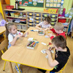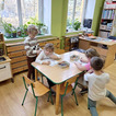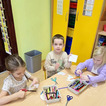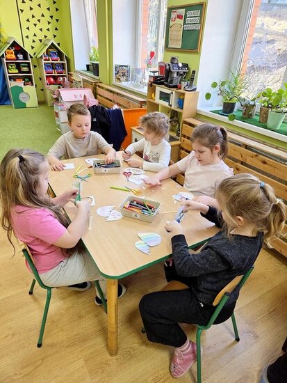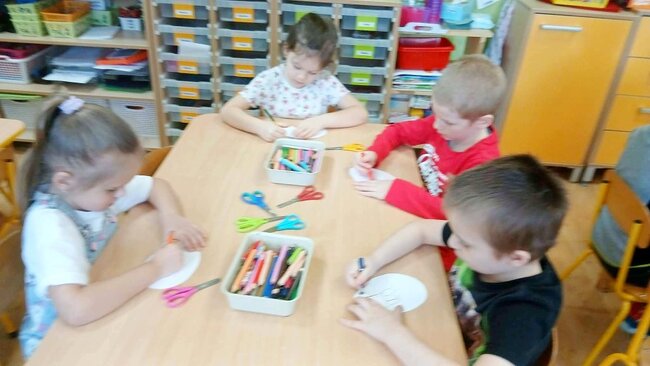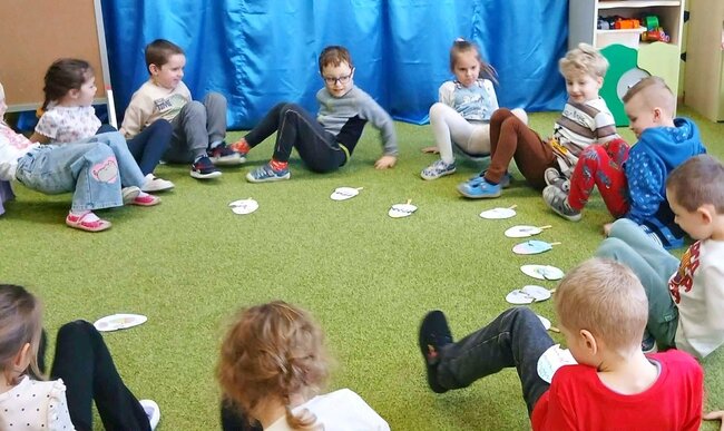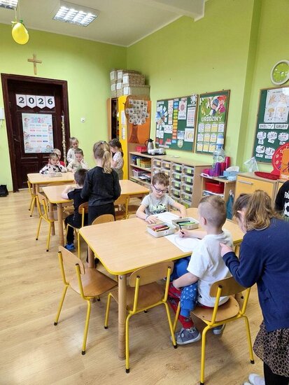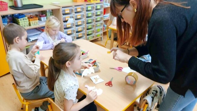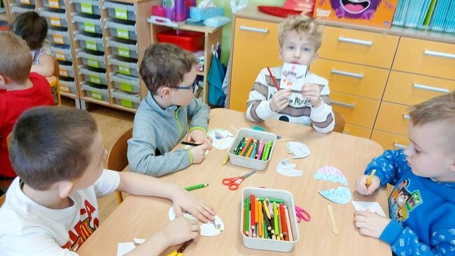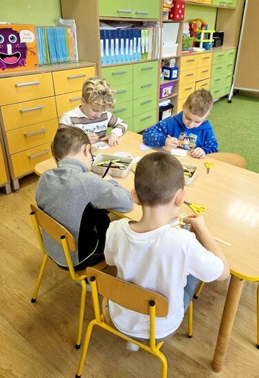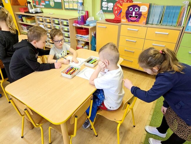 W ramach pierwszej pracy plastycznej przedszkolaki musiały narysować dinozaury na plecach kolegów, a oni starali się je przenieść na kartki. Zadanie nie było łatwe, ale zaangażowanie dzieci i ich entuzjazm pokazały, że był to ciekawy pomysł na zabawę.