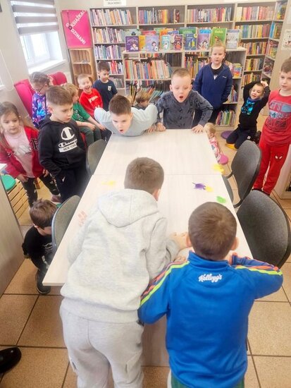 Spotkanie w bibliotece po raz kolejny było okazją do rozwijania słownictwa, ćwiczenia poprawnej wymowy oraz budowania świadomości językowej u najmłodszych. Dzieci wróciły do przedszkola z przekonaniem, że nauka języka może być świetną zabawą.