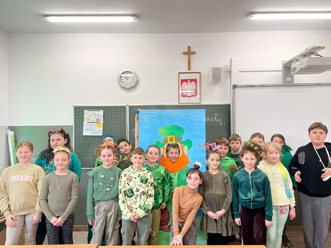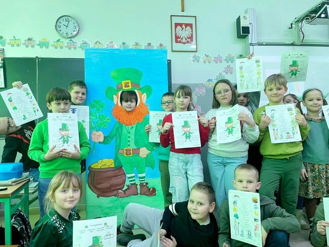 W ubiegłym tygodniu podczas zajęć# języka angielskiego uczniowie ze Szkoły Podstawowej im. ppor. Marka Uleryka w Dziewierzewie mieli okazję uczestniczyć w zajęciach kulturowych poświęconych obchodom Dnia Świętego Patryka. Była to dobra okazja do poznania ciekawostek związanych z tym irlandzkim świętem oraz jego tradycjami.