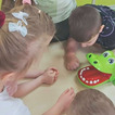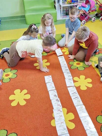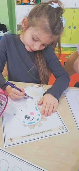 Dzieci brały udział w kreatywnych zajęciach plastycznych, tworząc własne dinozaury z papieru i plasteliny. Uczestniczyły również w „wykopaliskach”, podczas których z ogromnym zaangażowaniem odkopywały ukryte „skamieniałości”. Nie zabrakło także dinozaurowych tańców i wspólnych zabaw ruchowych.