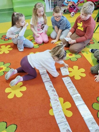Przedszkolaki wcieliły się w rolę małych paleontologów. Poznały różne gatunki dinozaurów, takie jak Tyrannosaurus rex, Triceratops oraz Stegosaurus. Dowiedziały się, czym się żywiły, jak wyglądały oraz dlaczego wyginęły.