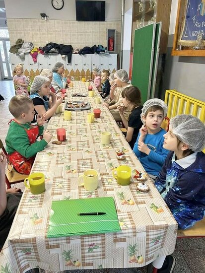 Od samego rana działo się naprawdę dużo. Dzieci z ogromnym zaangażowaniem tworzyły piękne babeczki pod czujnym okiem Pani Mileny Czechowskiej czyli wyśmienite Bajkowe Torty Kreatywnej zabawy było co niemiara, a wisienką na torcie był oczywiście słodki finał – degustacja własnoręcznie zrobionych babeczek oczywiście zjedzonych ze smakiem i uśmiechem.