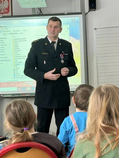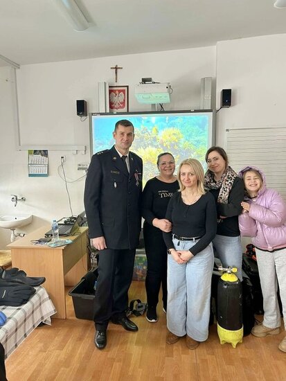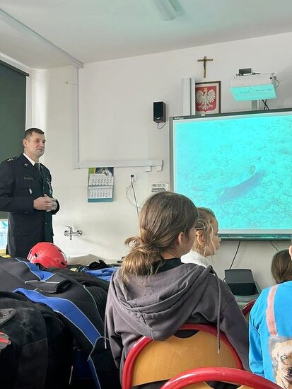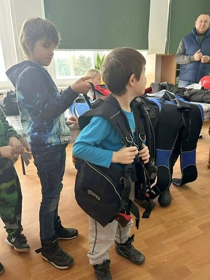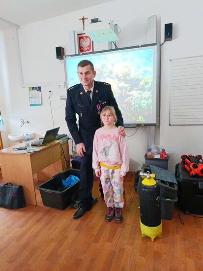 Nie zabrakło też niezwykłego spotkania. KPT. INŻ. Pan Jacek Gelert zabrał nas w fascynującą podróż do podwodnego świata. Opowiedział, z jakimi wyzwaniami mierzą się płetwonurkowie na co dzień, zaprezentował profesjonalny sprzęt, a na koniec dzieci mogły go przymierzyć i poczuć się jak prawdziwi nurkowie! To było naprawdę ciekawe i inspirujące doświadczenie.