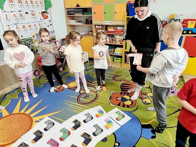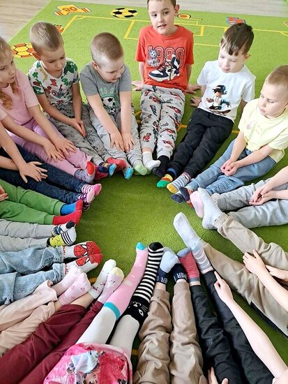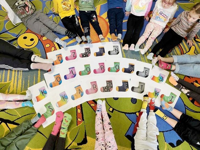 Na znak solidarności i tolerancji wszyscy – zarówno dzieci, jak i pracownicy przedszkola – założyli dwie różne, kolorowe skarpetki. Ten prosty gest stał się symbolem otwartości, zrozumienia i akceptacji dla drugiego człowieka.