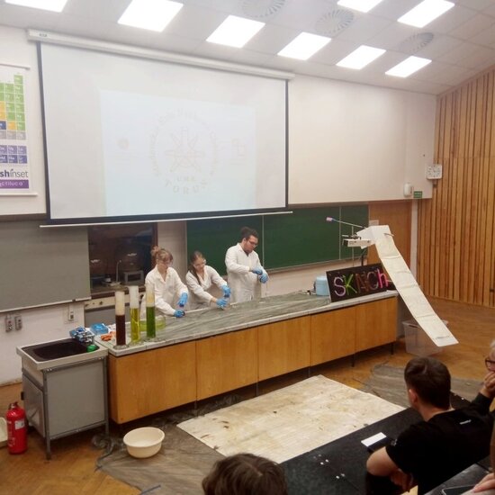 Nasi uczniowie mogli zobaczyć ciekawe pokazy chemiczne Studenckiego Koła Naukowego Chemików: odkryć tajemnice cząsteczek, poznać nowe techniki badawcze – od mikroskopii elektronowej po spektroskopię magnetycznego rezonansu jądrowego. Uczestniczyli w warsztatach laboratoryjnych „Sekretne życie cząsteczek” oraz „Chemia w akcji”. Studenci i pracownicy Wydziału przygotowali interesujące stoiska poszczególnych kierunków: chemia, chemia kosmetyczna, chemia i technologia żywności, chemia kryminalistyczna oraz materiały współczesnych technologii. Największe zainteresowanie wzbudziła chemia kryminalistyczna zaprezentowana przez funkcjonariuszy policji. Ten kierunek studiów koncentruje się na analizie śladów, przygotowuje do pracy w laboratoriach kryminalistycznych i służbach mundurowych.