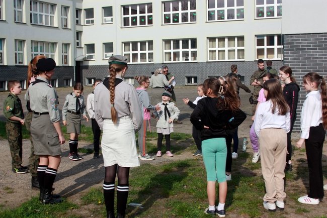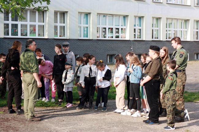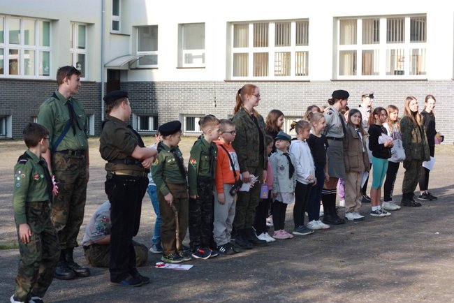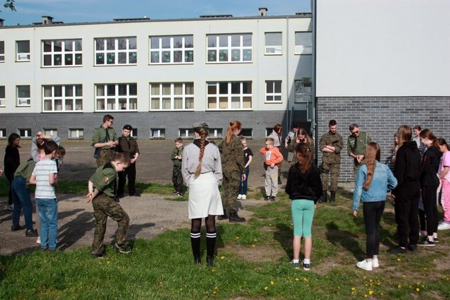 Na terenie szkoły zostały ukryte zagadki, których rozwiązanie pomogło w odczytaniu ukrytego tekstu. Rozwiązaniem okazał się art. 4 Ustawy o godle, barwach i hymnie Rzeczypospolitej Polskiej oraz o pieczęciach państwowych: