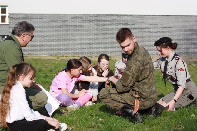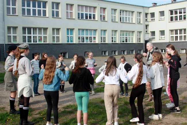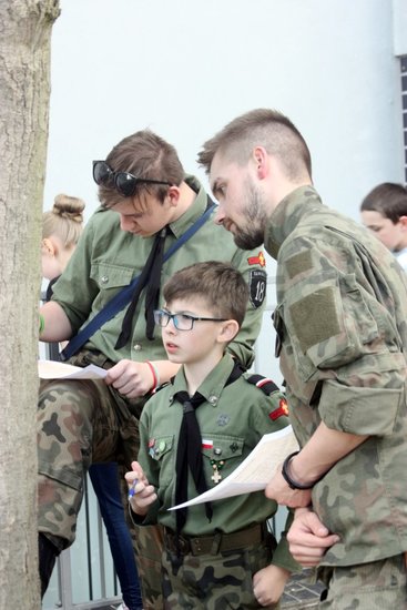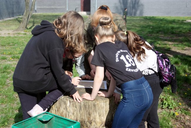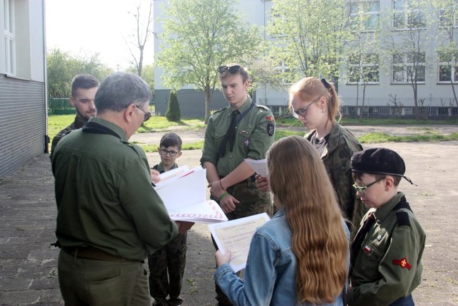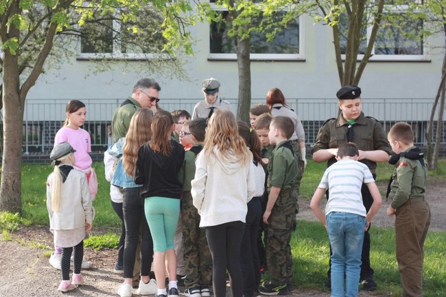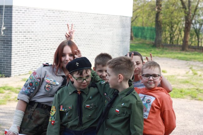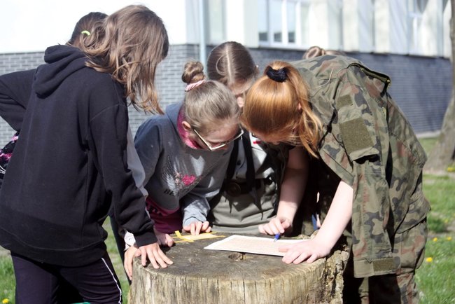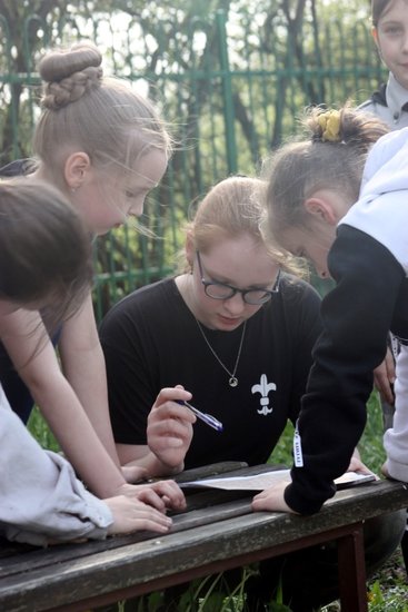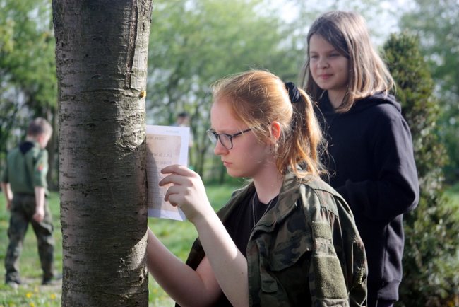 Harcerze i zuchy zmagali sie z quizem. Zagadki ukryte w terenie