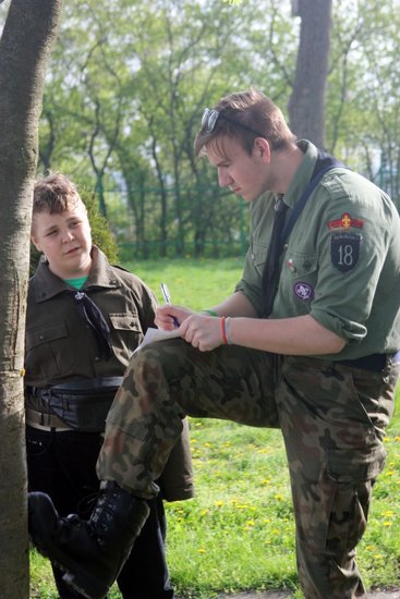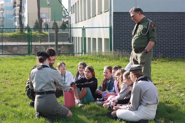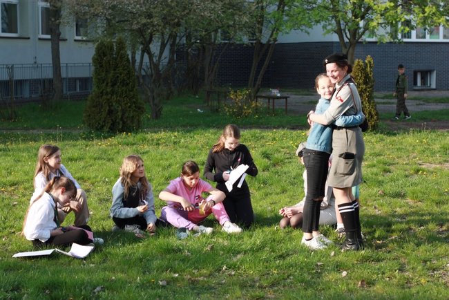 W piątek 28.04 po raz kolejny dopisała pogoda i zbiórka DH Zawiszaków mogła odbyć się #na świeżym powietrzu. Poprzednia zbiórka była poświęcona nauce posługiwania się kompasem w terenie. Tym razem harcerze i zuchy zmagali się z quizem związanym ze zbliżającym się Świętem Flagi Rzeczypospolitej Polskiej.