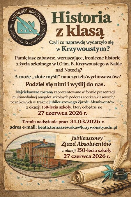 Pamiętasz zabawne, wzruszające, ironiczne historie z życia szkolnego w LO im. B. Krzywoustego w Nakle nad Notecią?
