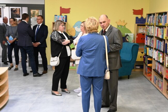 Po symbolicznym otwarciu obiektu, dyrektor PiMB Mariusz Skoczek zaprosił wszystkich do sali, która na co dzień pełni funkcję czytelni. Tam swoje okolicznościowe przemówienia wygłosili zaproszeni goście w osobach burmistrza Nakła Sławomira Napierały, przewodniczącego nakielskiej rady miejskiej Pawła Wiśniewskiego, starosty nakielskiego Krzysztofa Błońskiego, radnej województwa kujawsko-pomorskiego Anny Maćkowskiej, I wicewojewody kujawsko-pomorskiego Piotra Hemmerlinga, posłanki na Sejm RP Iwony Kozłowskiej oraz wicepremier Rady Ministrów i minister cyfryzacji Krzysztof Gawkowski.