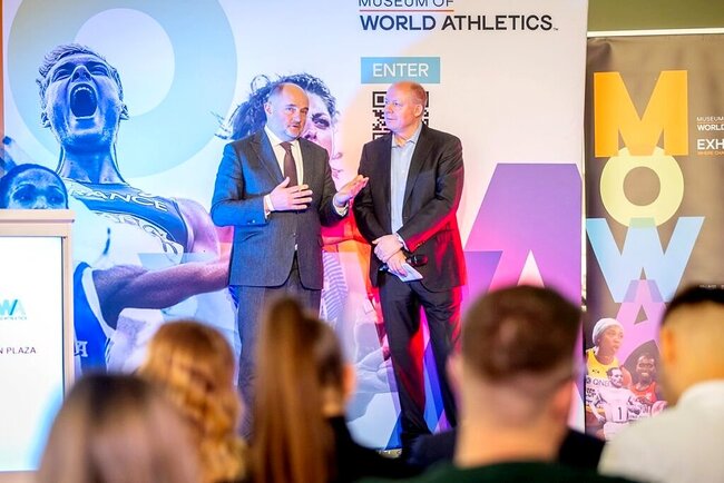 – To muzeum istnieje w świecie realnym – teraz tutaj w Toruniu, ale też w świecie wirtualnym. Dostęp do platformy cyfrowej muzeum można uzyskać ze strony World Athletics) – wyjaśniał dyrektor MOWA Chris Turner. – Znajduje się tutaj wiele artefaktów, ale też pokazuje kontekst w jakim mistrzowie lekkiej atletyki zdobywali swoje medale i bili rekordy. Na ścianie wind polecam plakat pokazujący kobiety i mężczyzn w soku wzwyż oraz skoku o tyczce. Ten plakat jest naturalnej wysokości i najlepiej uświadamia jakie wysokości pokonywali lekkoatleci zdobywając rekordy.
