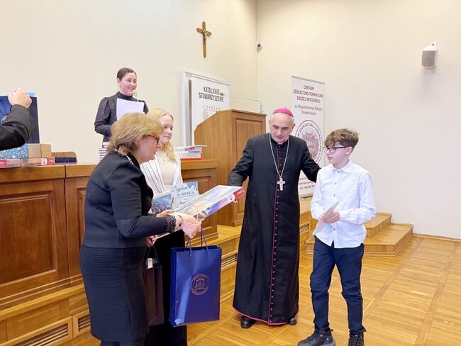 „Cieszę się, że kolejny raz jako Centrum Edukacyjno-Formacyjne, Katolickie Stowarzyszenie „Civitas Christiana” wraz z Katarzyną Dobosz – pomysłodawczynią konkursu – możemy współorganizować wydarzenie, skierowane do młodych adeptów sztuki, którzy chcą pogłębiać i rozwijać swoje talenty” – powiedział dyrektor CEF, ks. dr Paweł Hoppe. – Każdy ma jakąś zdolność, a konkursy służą również temu, by te talenty wydobywać, pokazać innym. Dziękuję, że one się objawiły dzięki tej inicjatywie. Cieszę się, że macie też taką satysfakcję – stwierdził bp Krzysztof Włodarczyk, który objął wydarzenie swoim patronatem.