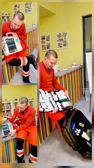 Jednym z najbardziej interesujących wydarzeń było spotkanie z ratownikiem, Panem Łukaszem Nowakiem, który opowiedział o swojej pracy oraz o zasadach udzielania pierwszej pomocy. Uczestnicy dowiedzieli się, jak reagować w sytuacjach zagrożenia i jak ważna jest szybka pomoc drugiemu człowiekowi. Dzieci z dużym zainteresowaniem zadawały pytania i chętnie brały udział w pokazie.