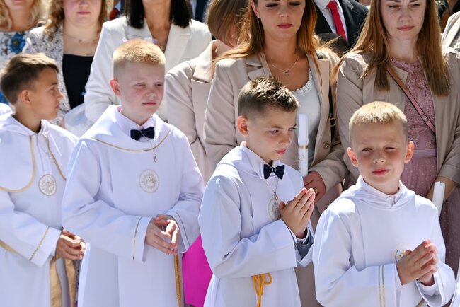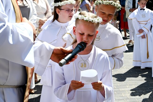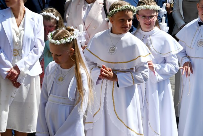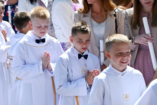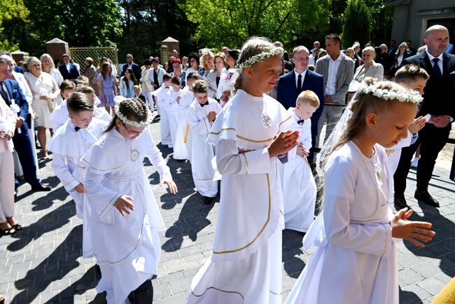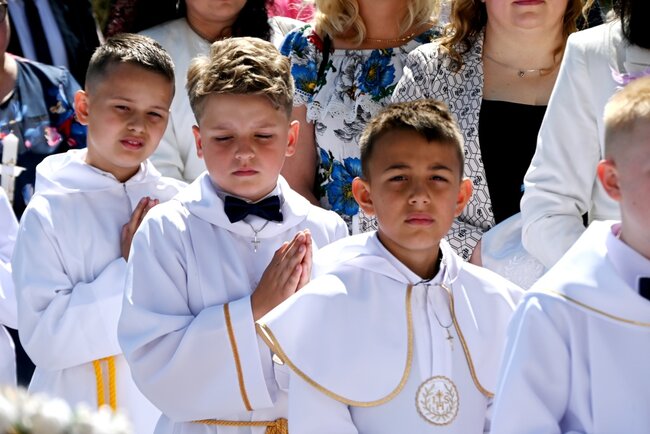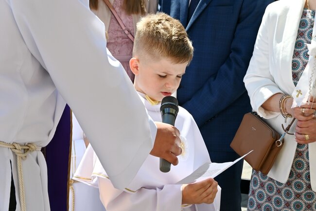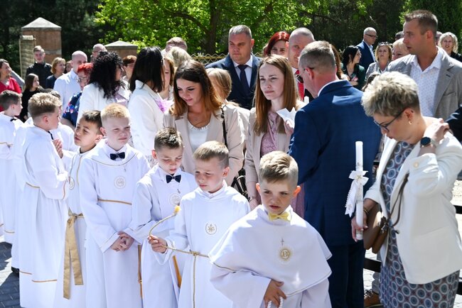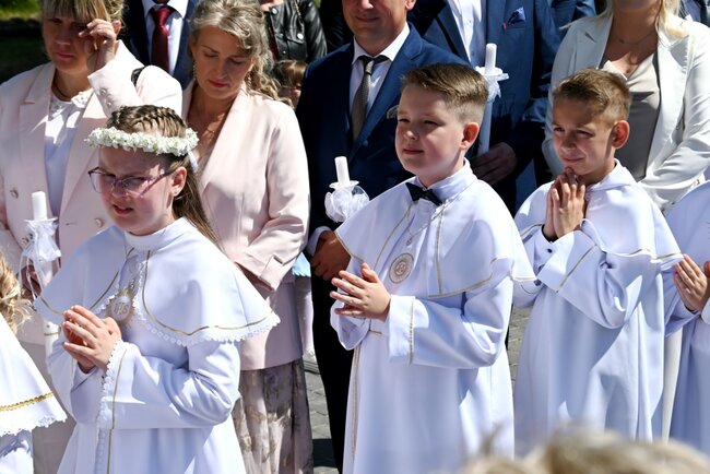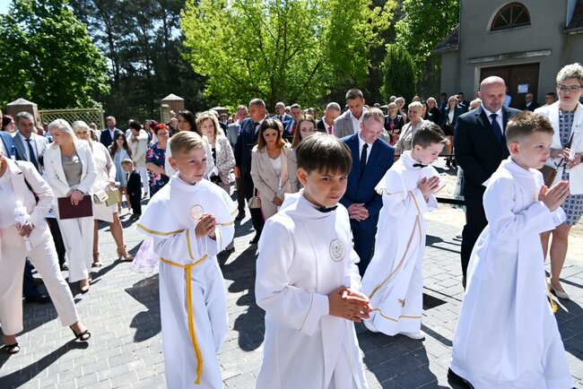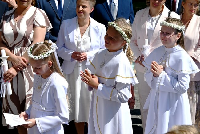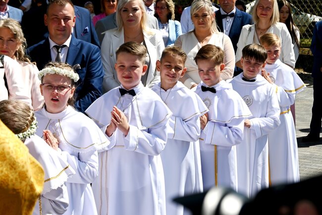 Mszy Świętej przewodniczył proboszcz parafii ks. Andrzej Białczyk, który podkreślił duchowe znaczenie tego wydarzenia i zachęcał dzieci oraz ich rodziny do dalszego pogłębiania wiary. Uroczystość zgromadziła licznie przybyłych wiernych, rodziny oraz przyjaciół pierwszokomunijnych dzieci, tworząc podniosłą i radosną atmosferę. Dzień ten na długo pozostanie w pamięci najmłodszych parafian i ich bliskich.
