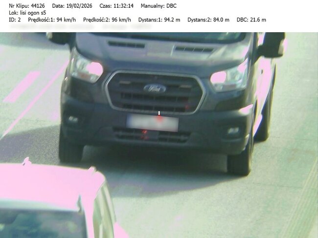 Do działań, które odbyły się w miniony czwartek i piątek (19 i 20.02.26) mundurowi wykorzystali urządzenie TruCAM II wyposażone w funkcję DBC (Distance Between Cars). Umożliwia ono precyzyjny pomiar odległości między pojazdami.