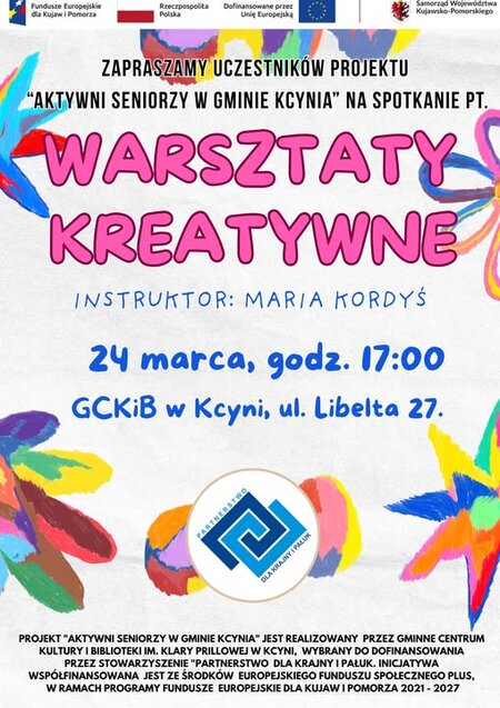 Zapraszamy uczestników #projektu "Aktywni Seniorzy w gminie Kcynia" na warsztaty kreatywne.