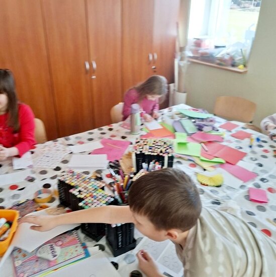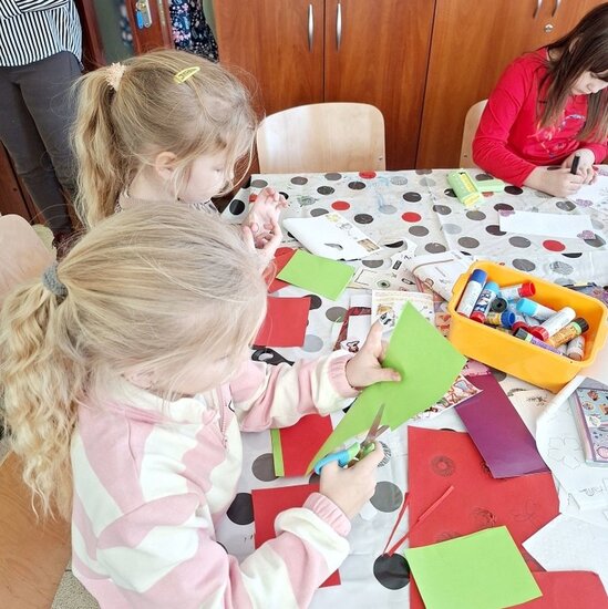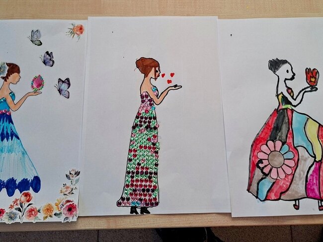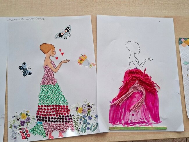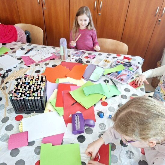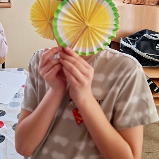 Tym razem odbyły się zajęcia plastyczne, podczas których nie brakowało rozmów, śmiechu oraz świetnej zabawy. Powstały arbuzowe wachlarze oraz piękne postacie w kolorowych sukniach z błyszczącymi ozdobami – czyli to, co dzieci lubią najbardziej.