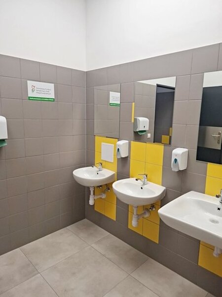 Remont wykonała firma Expo Construction Jacek Zimny. Szkoła zyskała nowoczesny o ciekawych walorach estetycznych łazienkę, która będzie służyła wszystkim dziewczętom.