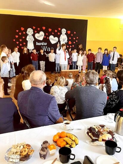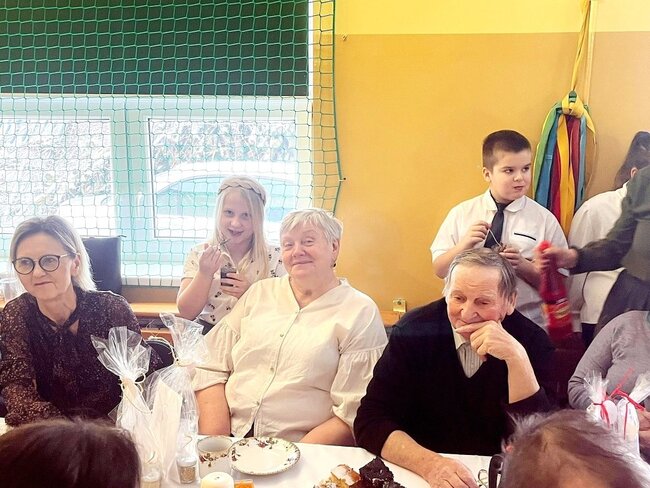 Frekwencja była naprawdę spora, jednak na szczęście udało się wszystkich pomieścić i stworzyć ciepłą, rodzinną atmosferę. Dzieci zaprezentowały wesoły program artystyczny, pełen piosenek, wierszy i uśmiechu, który wzruszył i rozbawił zgromadzonych dziadków. Wydarzenie było pięknym wyrazem wdzięczności oraz okazją do wspólnego świętowania i radosnych rozmów. W kolejnej części spotkania odbyła się prelekcja na temat zdrowego odżywiania, podczas której p.Lidia Lasik zwróciła uwagę na to, jak za pomocą odpowiedniej diety dziadkowie mogą dbać o swoje zdrowie, dobre samopoczucie i codzienną energię. Serdecznie dziękujemy wszystkim zaangażowanym w przygotowanie tej uroczystości!