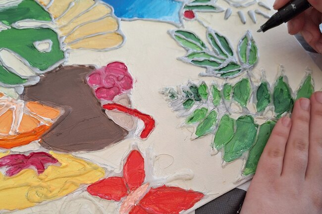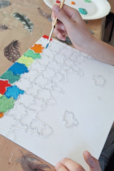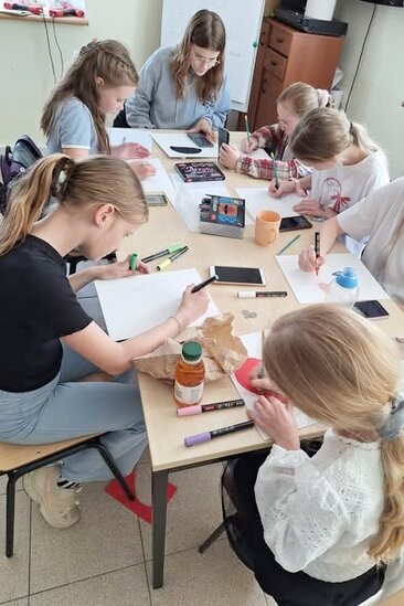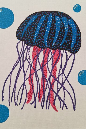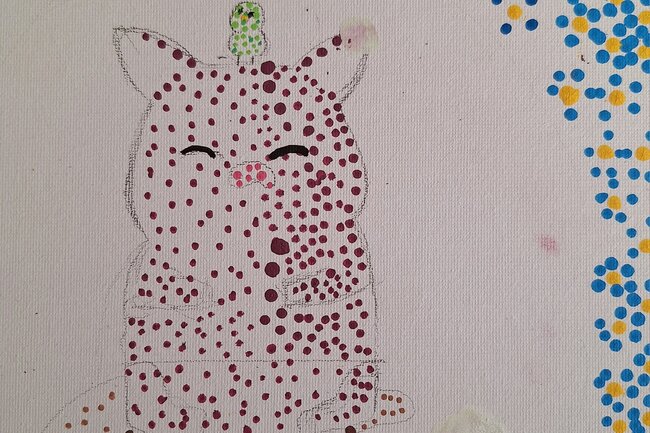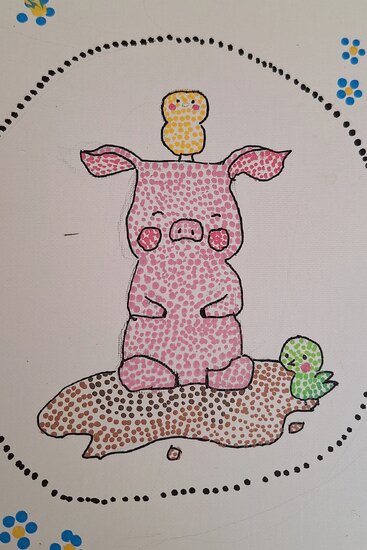 Proces tworzenia zaczął się od poszukiwania ciekawego pomysłu. Następnie na podobraziach dziewczyny rysowały delikatny szkic. I tak przechodziły do kropkowania swoich prac. Efekt końcowy bardzo im się spodobał, nam również.