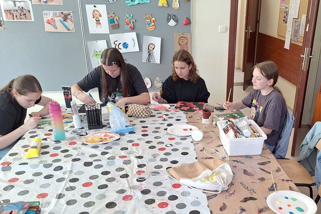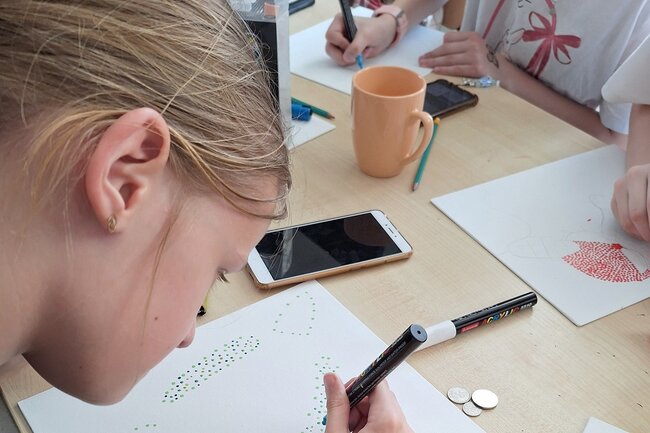 Malowanie kropkami. Dziewczęta spróbowały swoich sił