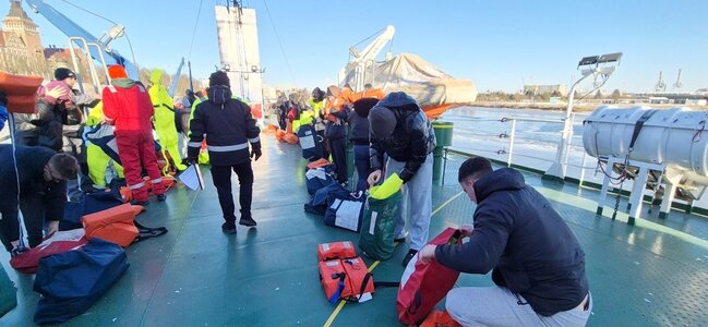 2 lutego 2026 roku uczniowie# klas IV i V Technikum nr 2 w Zespole Szkół Żeglugi Śródlądowej im. kmdr. Bolesława Romanowskiego w Nakle nad Notecią kształcącego w zawodzie technik żeglugi śródlądowej zostali zamustrowani na statek Politechniki Morskiej „Nawigator XXI”. Zostali przydzieleni do poszczególnych wacht i rozpoczęli praktykę zawodową.