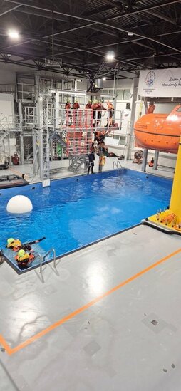 Uczniowie odbyli również wizytę w „Akademickim Centrum Szkoleniowym MUSTC” Politechniki Morskiej w Szczecinie. Mieli możliwość obserwacji profesjonalnego szkolenia i uczestniczyli w ćwiczeniach praktycznych, które pozwoliły im lepiej zrozumieć realia pracy na morzu. Zajęcia prowadzone były przez doświadczonych instruktorów, którzy dzielili się swoją wiedzą i doświadczeniem zawodowym.